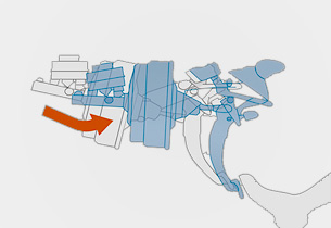 Rund um den Bereich des Frontstoßfängers, in dem ein Zusammenstoß mit den Beinen eines Fußgängers bei einem Unfall am wahrscheinlichsten ist, kommt eine stoßdämpfende Struktur zum Einsatz. Die Kollisionsenergie, die sonst auf die Beine des Fußgängers wirken würde, wird absorbiert, wodurch die Kniegelenke und andere Körperteile des Fußgängers vor möglichen Verletzungen geschützt werden.