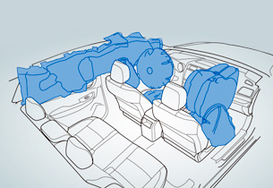 Die SRS-Airbags für den Fahrer- und den Beifahrersitz arbeiten Hand in Hand mit den Sicherheitsgurten. Die auf eine kompakte Größe zusammengefalteten Kissen sind im Lenkrad und im Armaturenbrett untergebracht und werden bei einer Kollision blitzschnell aufgeblasen, um die Passagiere zusätzlich zu schützen.