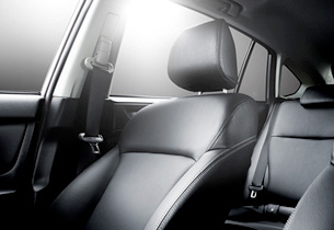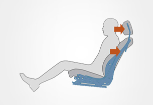 Bei einem Auffahrunfall spielen die Sitze eine extrem wichtige Rolle für den Insassenschutz. Daher sind die serienmäßigen Vordersitze von Subaru Fahrzeugen mit drei Mechanismen zur Absorption von Stößen ausgestattet: (1) Aktive Kopfstützen halten den Kopf fest in Position. (2) Dank ihres inneren Aufbaus aus zwei Lagen leiten die energieabsorbierenden Kopfstützen auf den Kopf einwirkende Kräfte ab, was die Gefahr eines Schleudertraumas verringert. (3) Die gesamte Rückenlehne absorbiert den Stoß, der die Passagiere nach hinten wirft, und minimiert so die an sie weitergeleitete Stoßwirkung. Stoßdämpfende Materialien werden darüber hinaus auch am Dachhimmel und an anderen Oberflächen im Innenraum eingesetzt, um die bei einer Kollision auf die Köpfe der Insassen übertragene Stoßwirkung zu reduzieren.