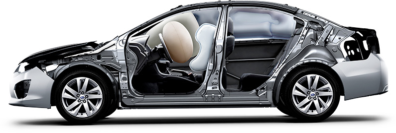 Zum Schutz der Insassen bei einem Seitenaufprall verfügen Subaru Fahrzeuge über in die Türen eingebaute robuste Streben auf beiden Seiten des Wagens. Die durch die Karosserie mit ringförmigen Verstärkungsrahmen erzielte hohe Robustheit schützt den gesamten Fahrgastraum im Fall einer Kollision oder eines Überschlags. Die Ausstattung des Wagens mit vorderen SRS-Airbags bzw. SRS-Kopfairbags und der Einsatz von stoßdämpfenden Materialien im gesamten Innenraum steigern den Schutz des Kopfes und Körpers der Insassen in einer Fahrgastzelle, die gänzlich auf die Abschwächung von Kollisionsstößen ausgelegt ist.