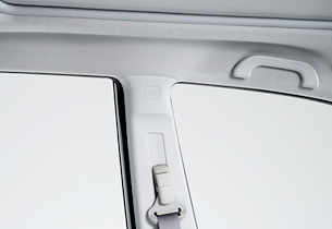 Für einen besseren Schutz bei einer Kollision weisen alle Oberflächen im gesamten Kopfraumbereich des Fahrer- und des Beifahrersitzes eine stoßabsorbierende Struktur auf.